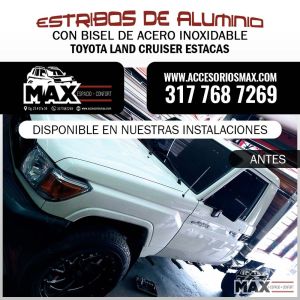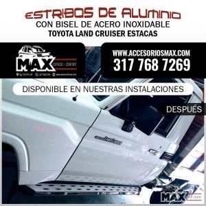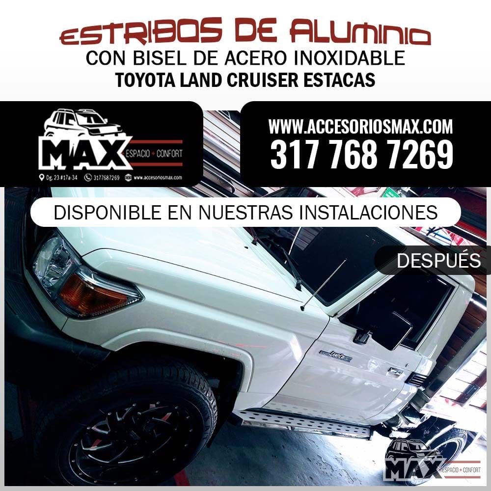 • Estribos de Aluminio con Bisel de Acero para Toyota Land Crusier Estacas