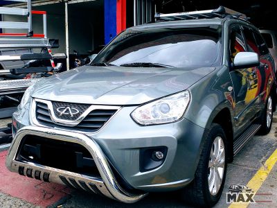 Bomper delantero en acero inoxidable para Cherry Tiggo no requiere perforación al vehículo, soportes fabricados a la medida calidad e instalación 100% garantizada, brinda protección adicional que ayuda a resguardar en buenas condiciones el bomper.